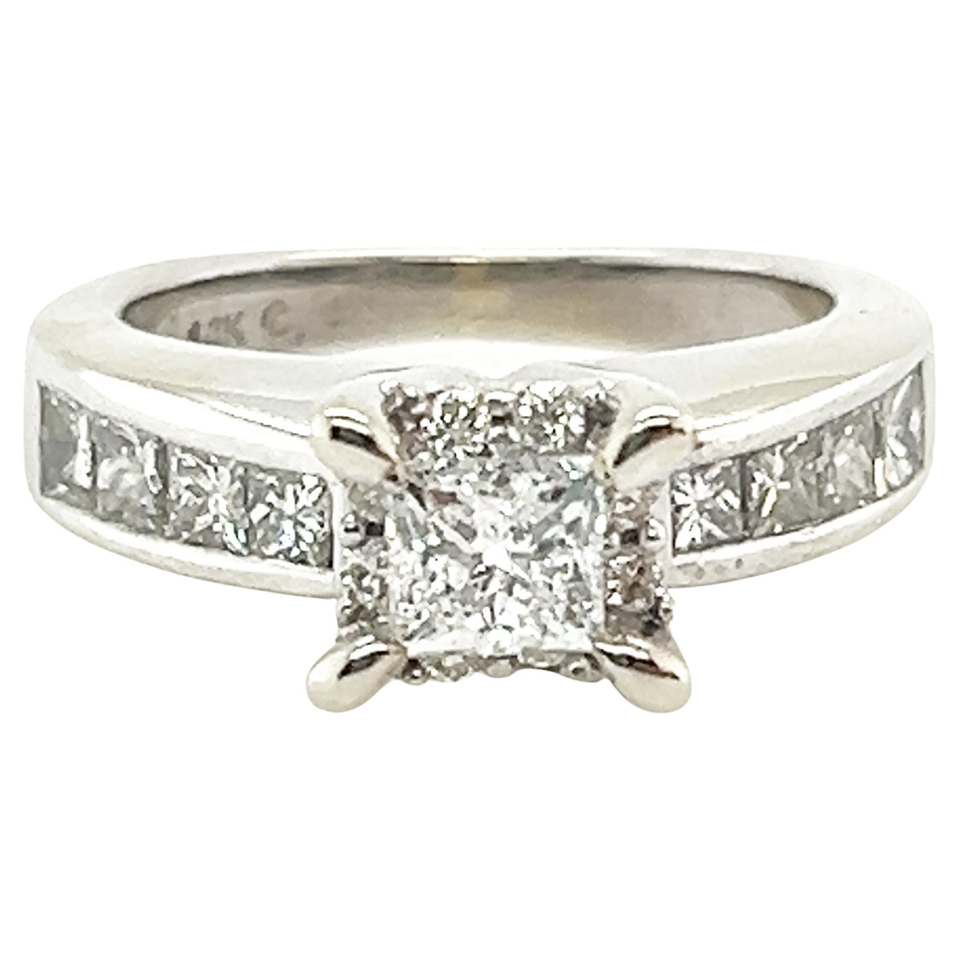 14 Karat White Gold 5 Princess Cut Diamonds Anniversary Wedding Ring